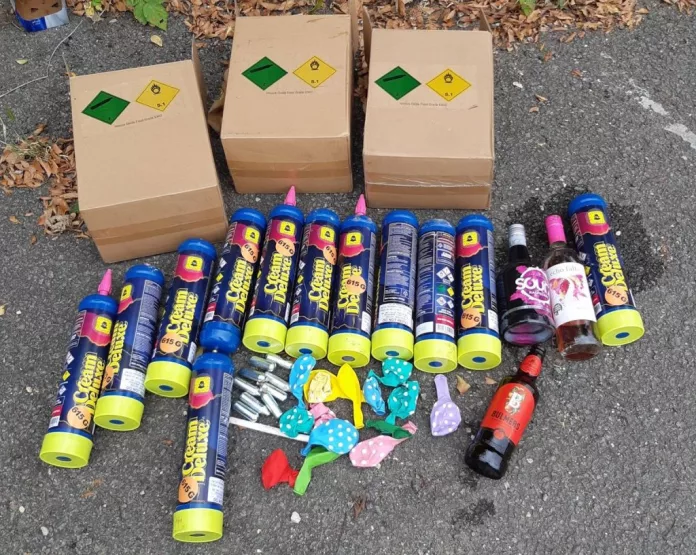 Криминалисти от Районното управление в Пазарджик иззеха флакони с диазотен оксид при проверка на лек автомобил.