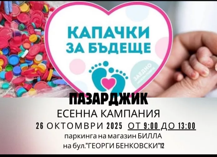 На 26 октомври (неделя) от 9:00 до 13:00 часа на паркинга на магазин BILLA на бул. „Георги Бенковски“ №12 в Пазарджик ще се проведе есенната кампания „Капачки за бъдеще“.
