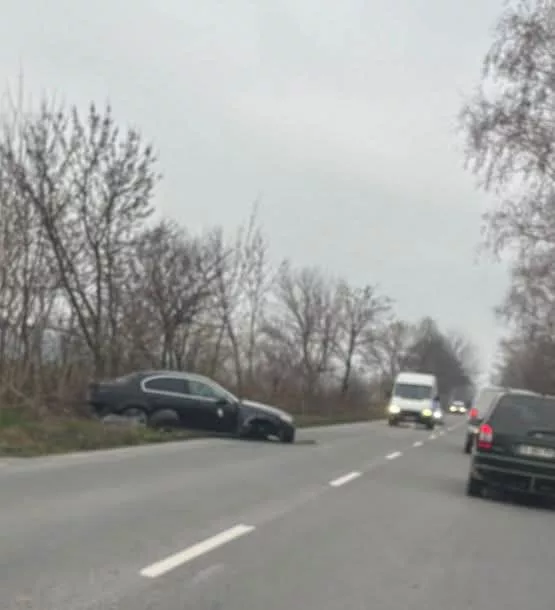 По първоначална информация два леки автомобила, движещи се в една и съща лента, се блъскат. В резултат на това колата, която е отпред, се завърта и напуска платното за движение.