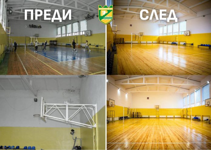 Ремонтът отвътре е реализиран изцяло със средства на Община Пазарджик, извън обхвата на програмата за саниране. Залата посреща спортистите с изциклен и наново лакиран дървен под, освежени интериори и осветление, нова трибуна със седалки на мястото на старите дървени пейки, както и обновени коридори и общи пространства. Паралелно е модернизирана и залата за бойни и силови спортове — подменени са вратите, ремонтирани са тавани и са изцяло обновени съблекалните и санитарните помещения.