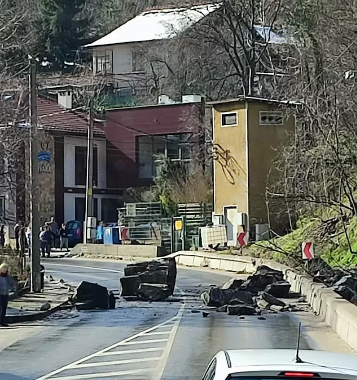 Срутването е в района на Варварските бани, движението е спряно и в двете посоки.